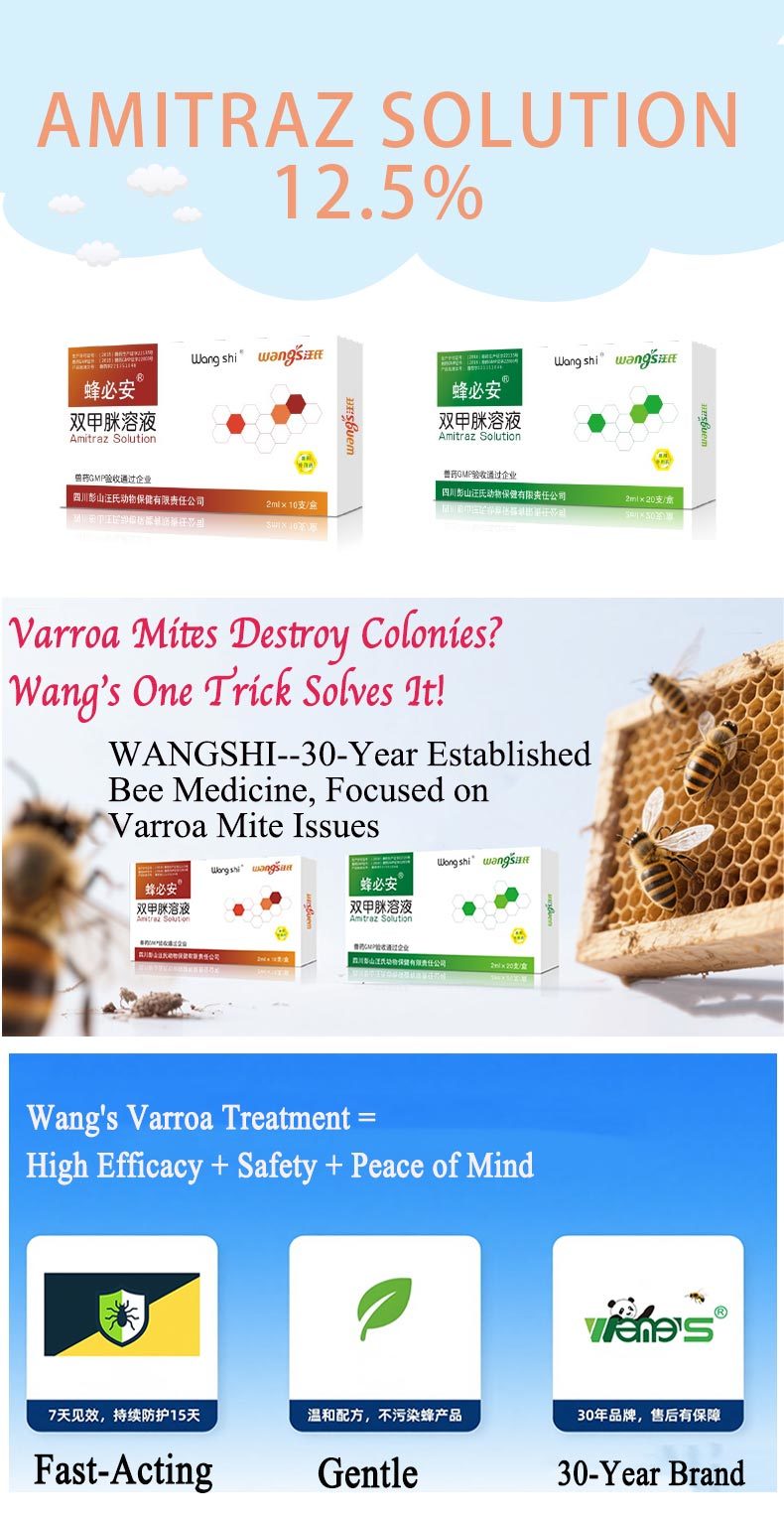 Amitraz solution, ampoules. Active ingredient: Amitraz. In an ampoule 2 ml. Applicable to: bees. Country of origin: China. Brand: WANGSHI Expiry date: 2 years.